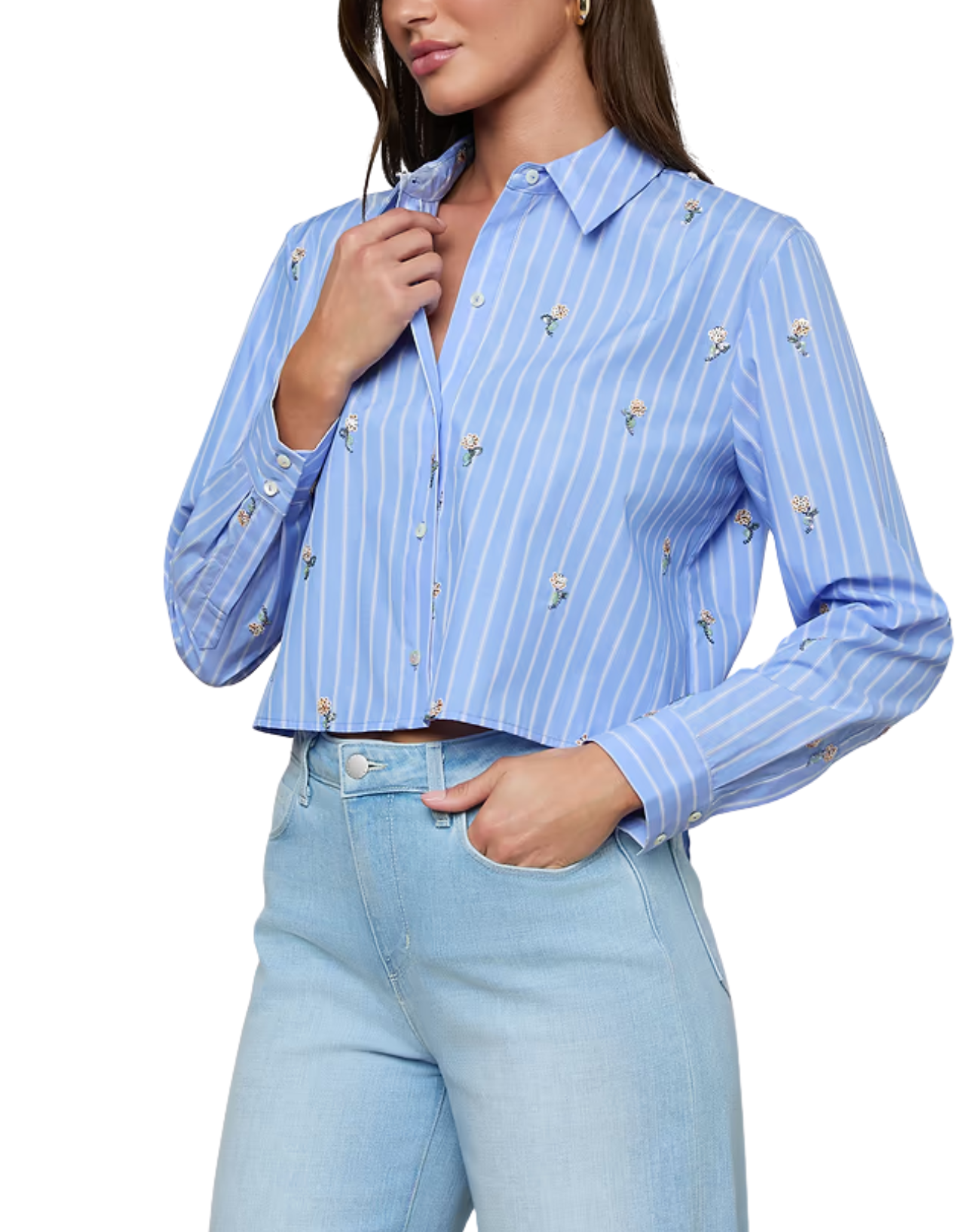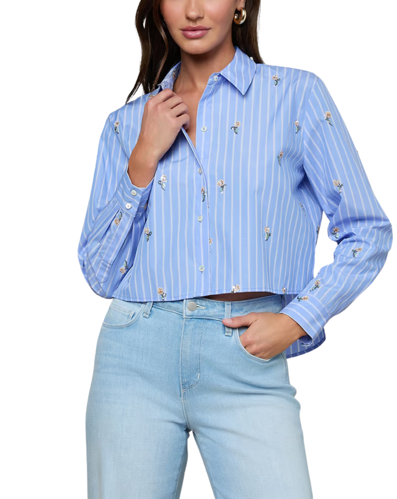 Cosette Crop Blue Stripe/Sequin Shirt